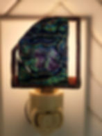 My stained glass practice is split among art piece creation (my favorite), commission work (second favorite), and what I think of as 'trinkets' - candle holders, jewelry boxes, pencil cups, business card holders, etc. The trinkets are reasonably priced and subsequently simple pieces that I hope will add color and pattern and a bit of whimsy to your decor.